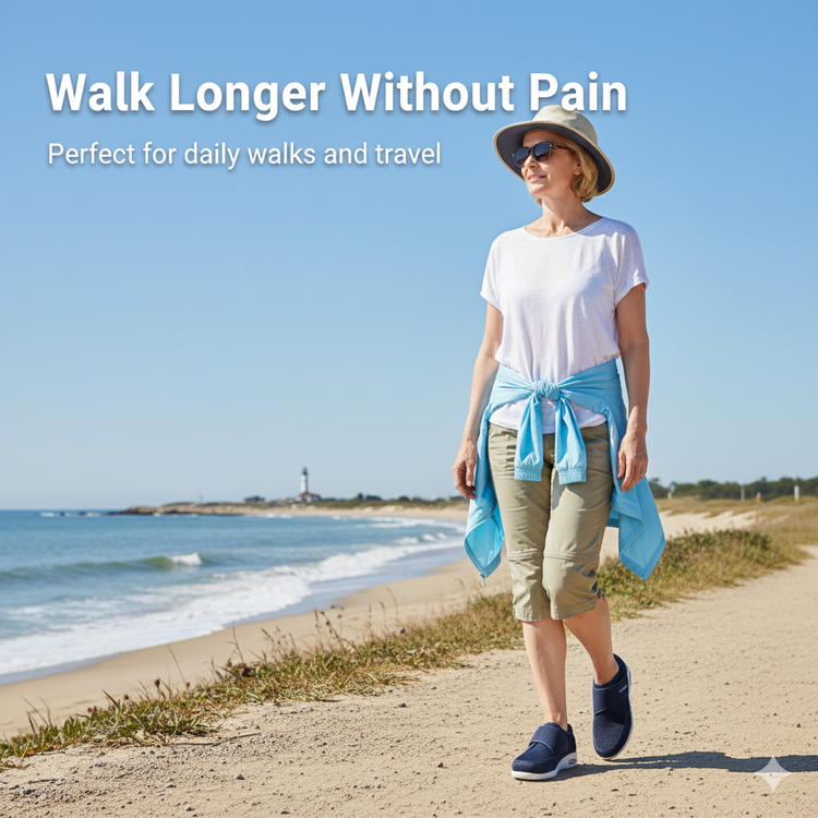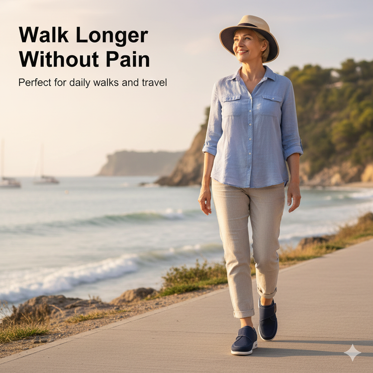 Tired of foot pain slowing you down? FLEXYWALK’s roomy design and cushioned insoles deliver unbeatable comfort from the first step. Whether you're running errands, exploring the city, or enjoying a stroll in the park, these shoes flex with you. Say goodbye to wet socks and sore arches—your feet deserve the best.